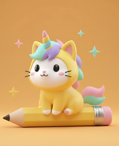 I turn the concept into loose, expressive sketches to explore poses, shapes, and personality.